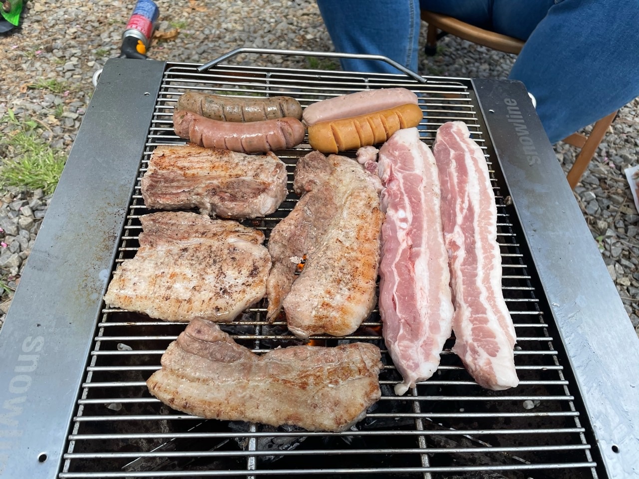 후딱 텐트를 피칭하고 고기를 구워먹었습니다. 요즘은 캠핑을 가게 되면 밤에 바베큐를 하는 것보다